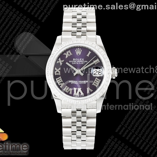 AR공장 레이디 DateJust 31mm Purple Roman Dial Diamonds Bezel ETA2688