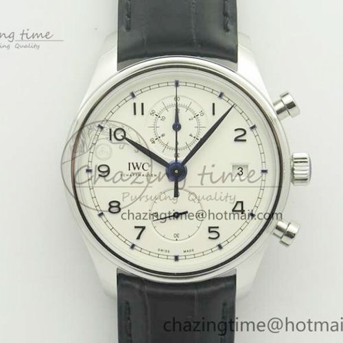 ZF 포르투기즈 Chrono 42 IW390302 White Dial Blue Markers / Black Leather Strap A7750